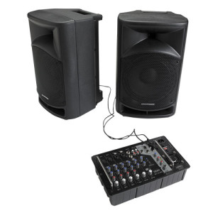 Le système complet est composé de deux enceintes passives combinées à une table de mixage compacte gérant l’amplification. Avec 4 entrées micro/instrument, 2 entrées ligne, une entrée Bluetooth® et un effet de Reverb paramétrable, vous possédez tous les outils pour sonoriser un ensemble musical, une présentation à un ou plusieurs micros, ou à mettre l’ambiance avec de la musique enregistrée.